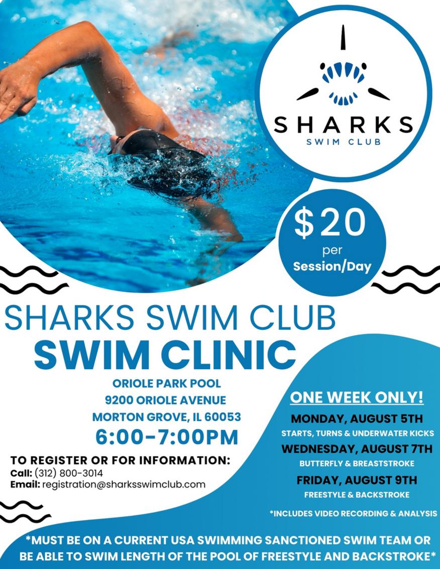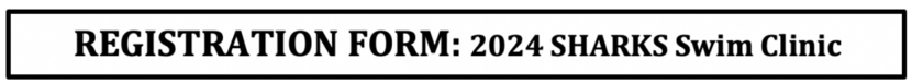 THANK YOU FOR REGISTERING YOUR SWIMMER FOR THE 2024 SHARKS SWIM CLINIC. IF WE NEED ANY ADDITIONAL INFORMATION, WE WILL CONTACT YOU WITHIN 24-48 HOURS TO CONFIRM YOUR SWIMMER'S SLOT. PLEASE FEEL FREE TO REACH OUT TO INFO@SHARKSSWIMCLUB.COM WITH ANY QUESTIONS OR FOR ANY CHANGE IN ATTENDANCE. THANK YOU FOR YOUR BUSINESS!