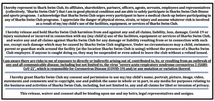 FORM BELOW MUST BE COMPLETED PRIOR TO THE FIRST DAY OF YOUR SWIMMER'S PARTICIPATION.
